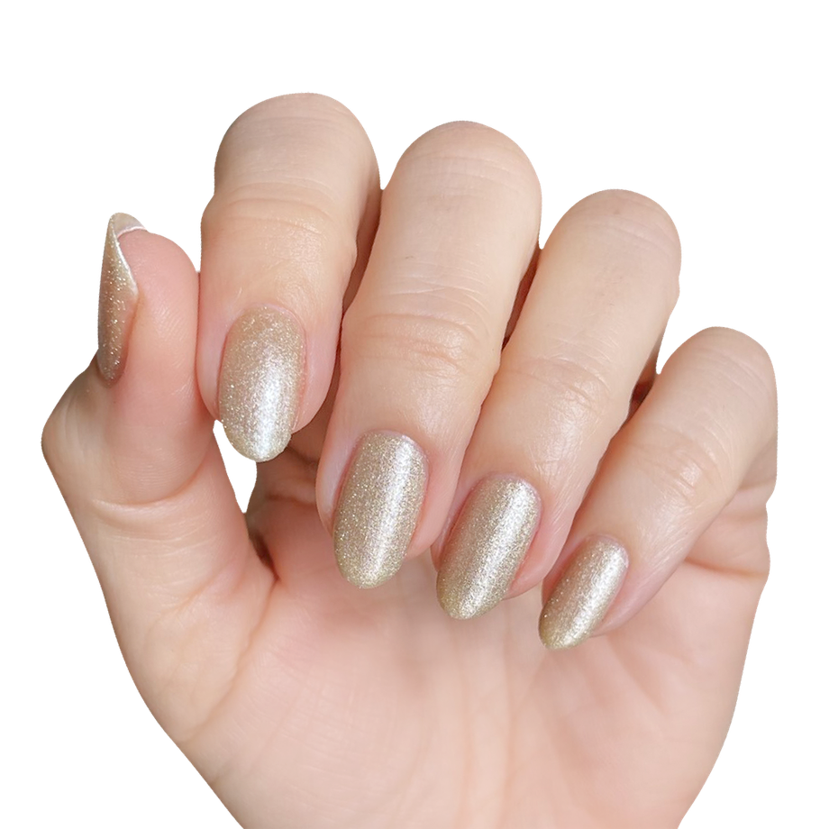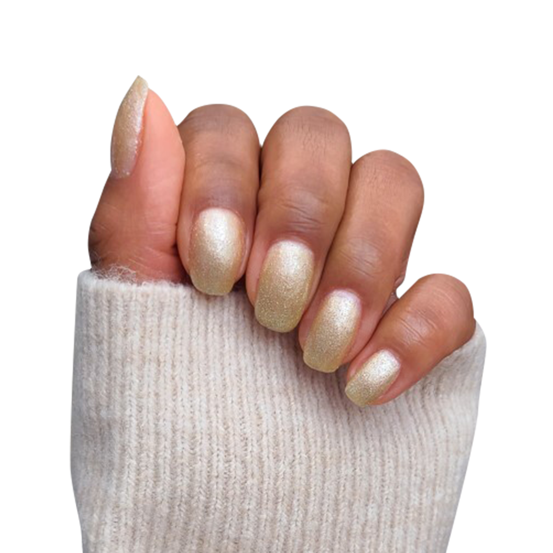 The silvery-gold sheen of this sheer polish is out-of-this-world.